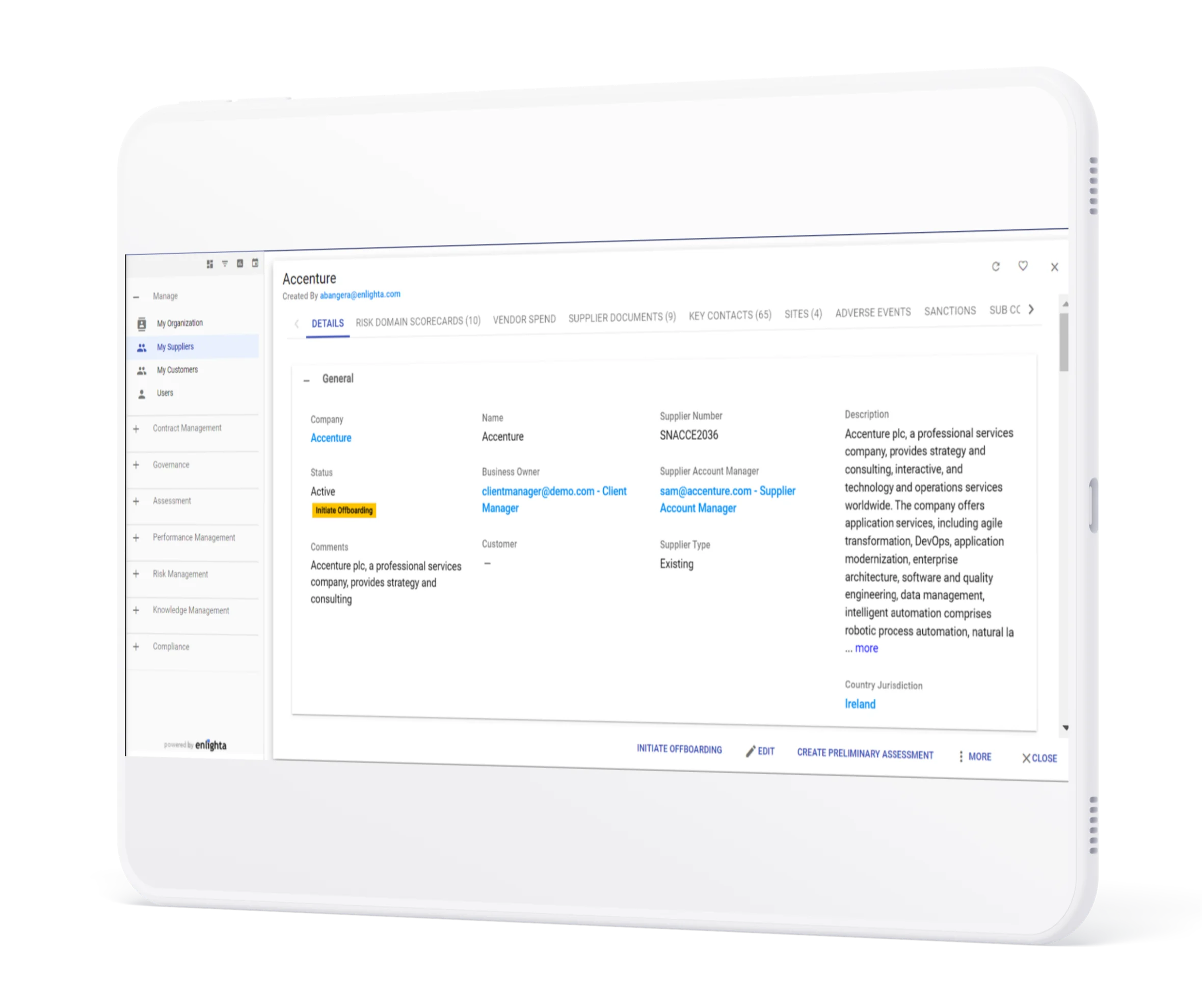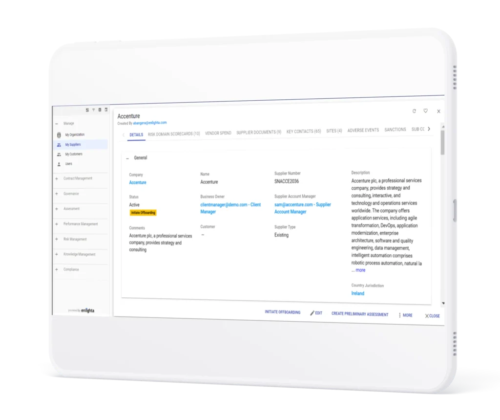 - Launch built-in risk assessments to assess initial risk scores for supplier segmentation. Continually identify and mitigate cross-domain risks collaboratively.
