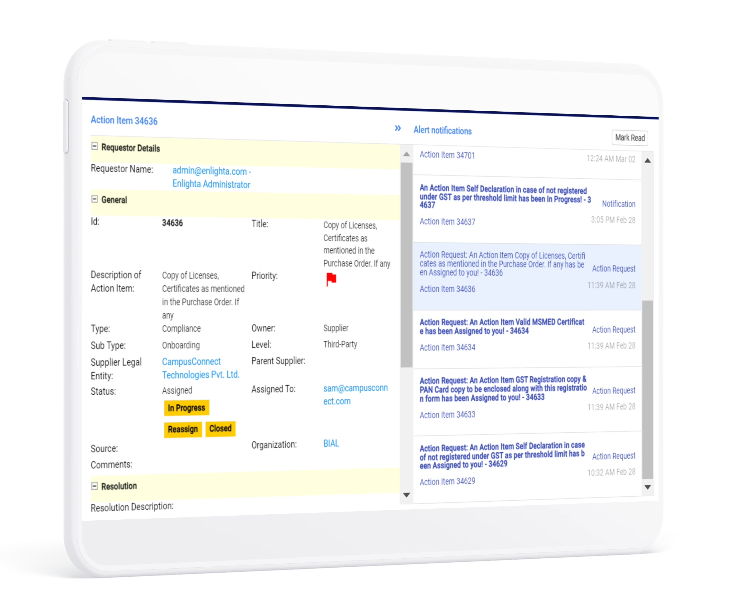 When used alongside Enlighta Procure, TPRM, and Govern, the Vendor Portal also gives vendors a centralized hub to: